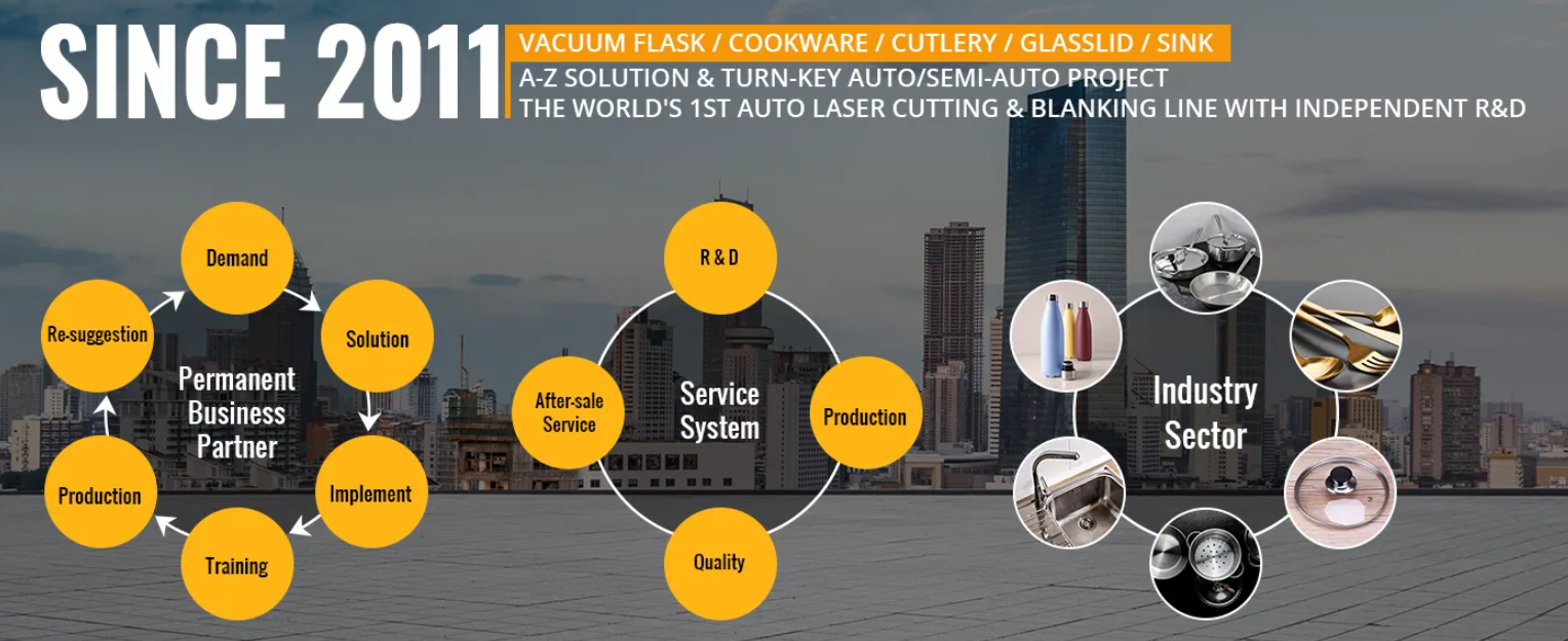 We offer a variety of automatic machinery and equipment designed for producing vacuum flasks, coffee pots, cutlery, and other kitchenware items.